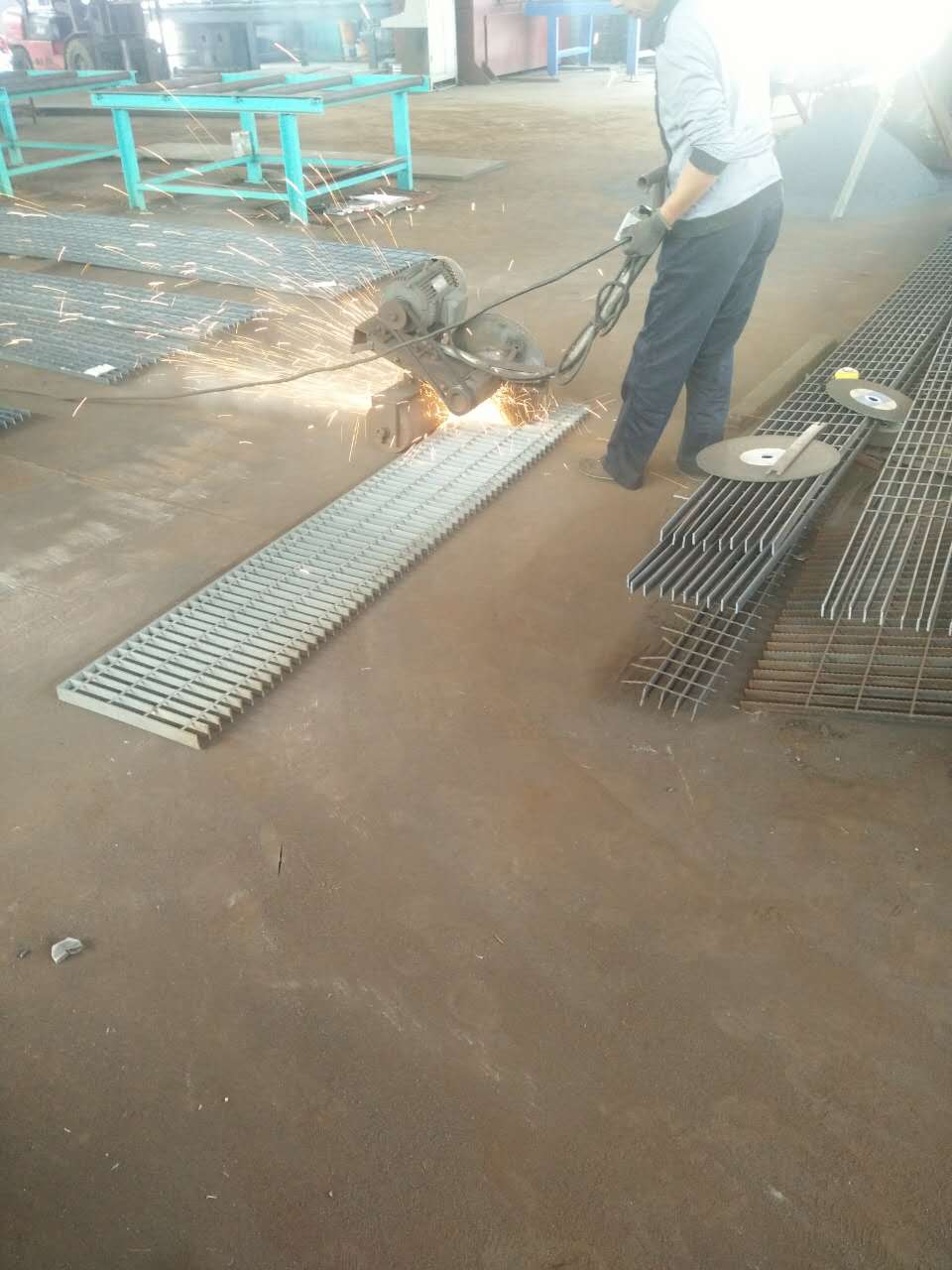 熱鍍鋅鋼格板是由負載扁鋼和橫桿按一定間距經緯排列,在高壓電阻焊機上焊接而成原板,經切割、切口、開孔、包邊等工序深加工而成客戶要求的成品。